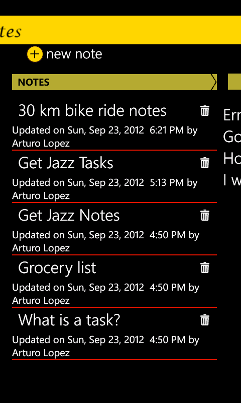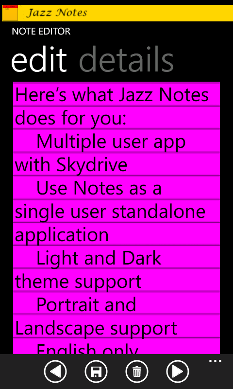 - Note Editor, shows the first note in the editor, with navigation to next and previous notes.
