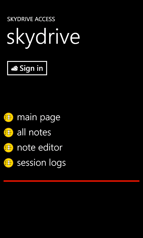 - Start Page: (Main, Note, Note Editor, Sign in)