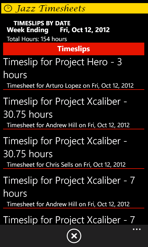 - List of timeslips worked for the same week